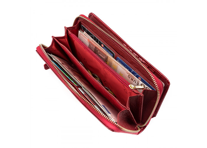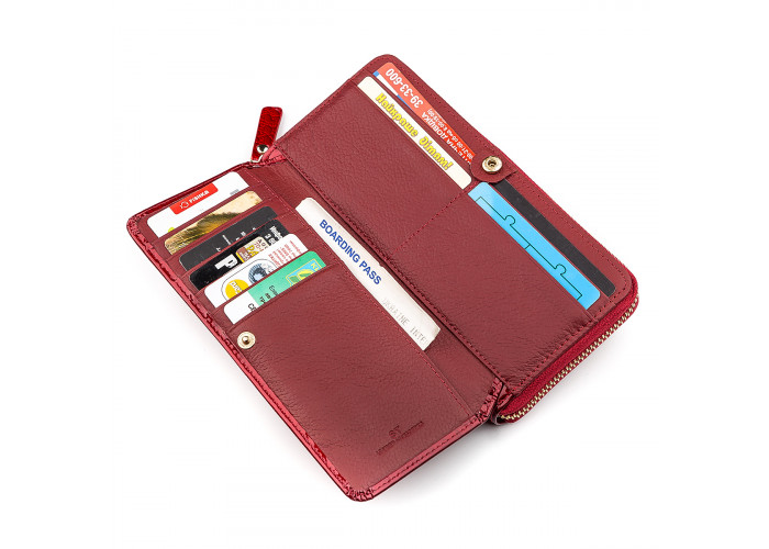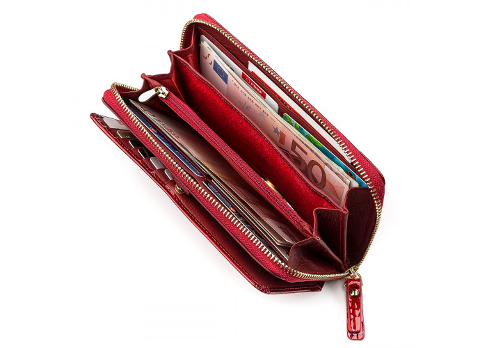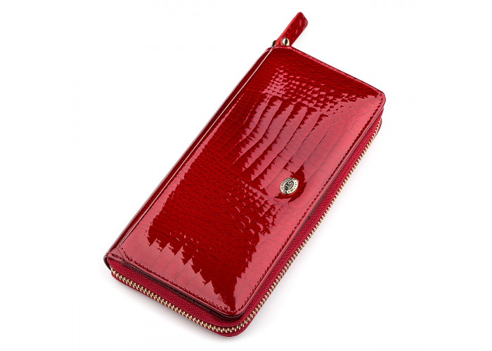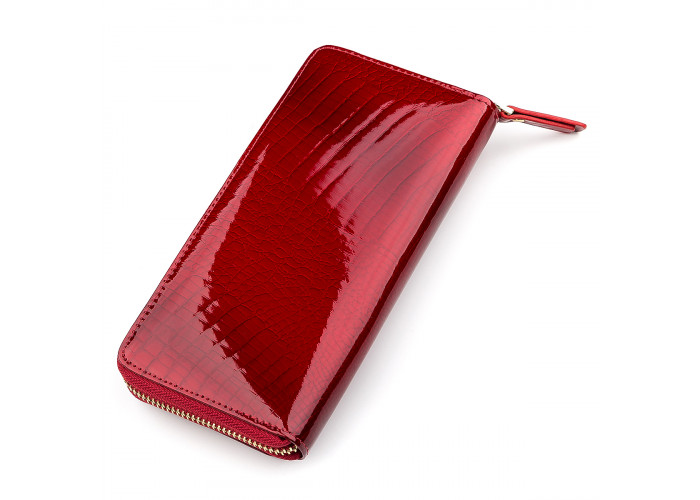 Данная модель изготавливается из качественной, экологически чистой кожи и декорирована узором под крокодиловую кожу. Кошелек приятный на ощупь и привлекательный на вид, имея шикарный глянцевый блеск и прочную фурнитуру с золотистым оттенком. Закрывается аксессуар на надежную молнию, а отдельно вынесенный блок, предназначенный платежным и дисконтным картам на кнопку. Внутреннее пространство позволяет комфортно размещать деньги и карточки, а в перегородке расположен карман на молнии для мелких вещей и монет. Дополняется кошелек фирменной красивой коробкой, благодаря которой можно использовать аксессуар в качестве подарка.