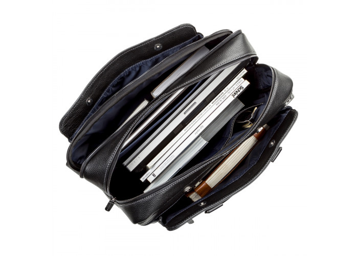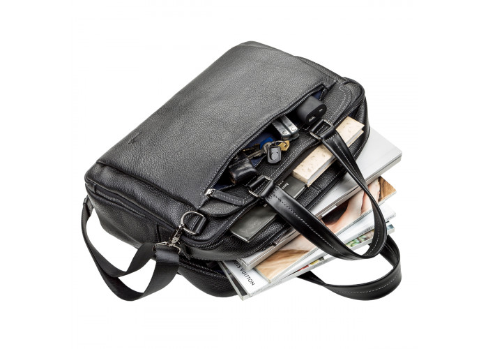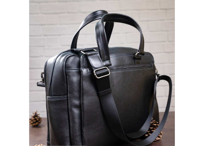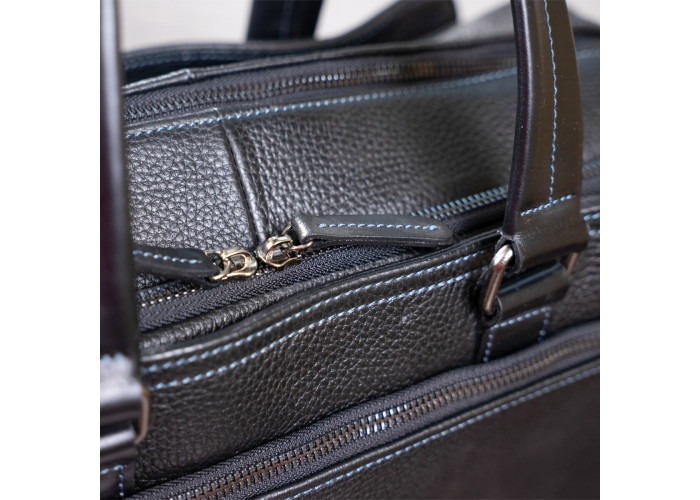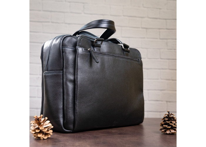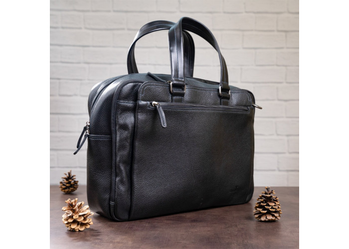 Надежная мужская сумка на двух удлиненных ручках для людей, которые часто отправляются в деловые поездки. Аксессуар выполнен из натуральной зернистой кожи, мягкой и приятной на ощупь.