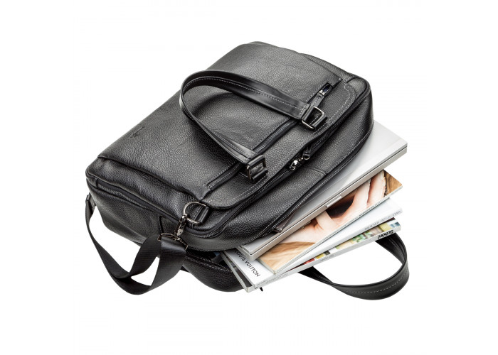 отдельный отдел на молнии для ноутбука, с потайным карманом на молнии. По бокам, с двух сторон, большие отделы, закрывающиеся на магниты. Снаружи: на передней и задней стенках большие карманы на молниях. Подкладка выполнена из прочного материала, в наличии съемный плечевой ремень. Аксессуар упакован в пылезащитный чехол.